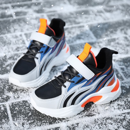 Children's Cotton Shoes Autumn and Winter New Two Cotton Plus Velvet Boys Sports Shoes Leather Velcro Kids Shoes