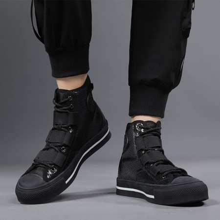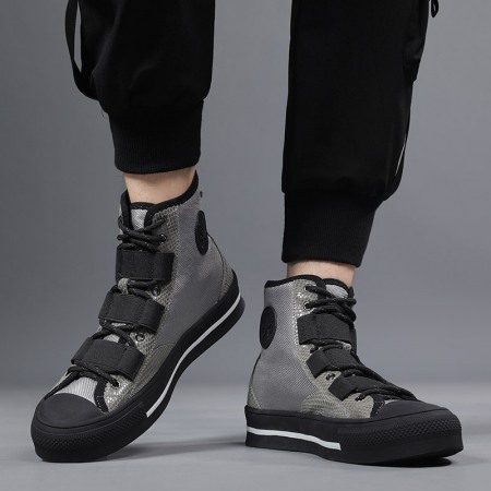Men's Round Toe Fabric Stitching Casual Mens Canvas Shoes Flat Heel Men's Shoes
