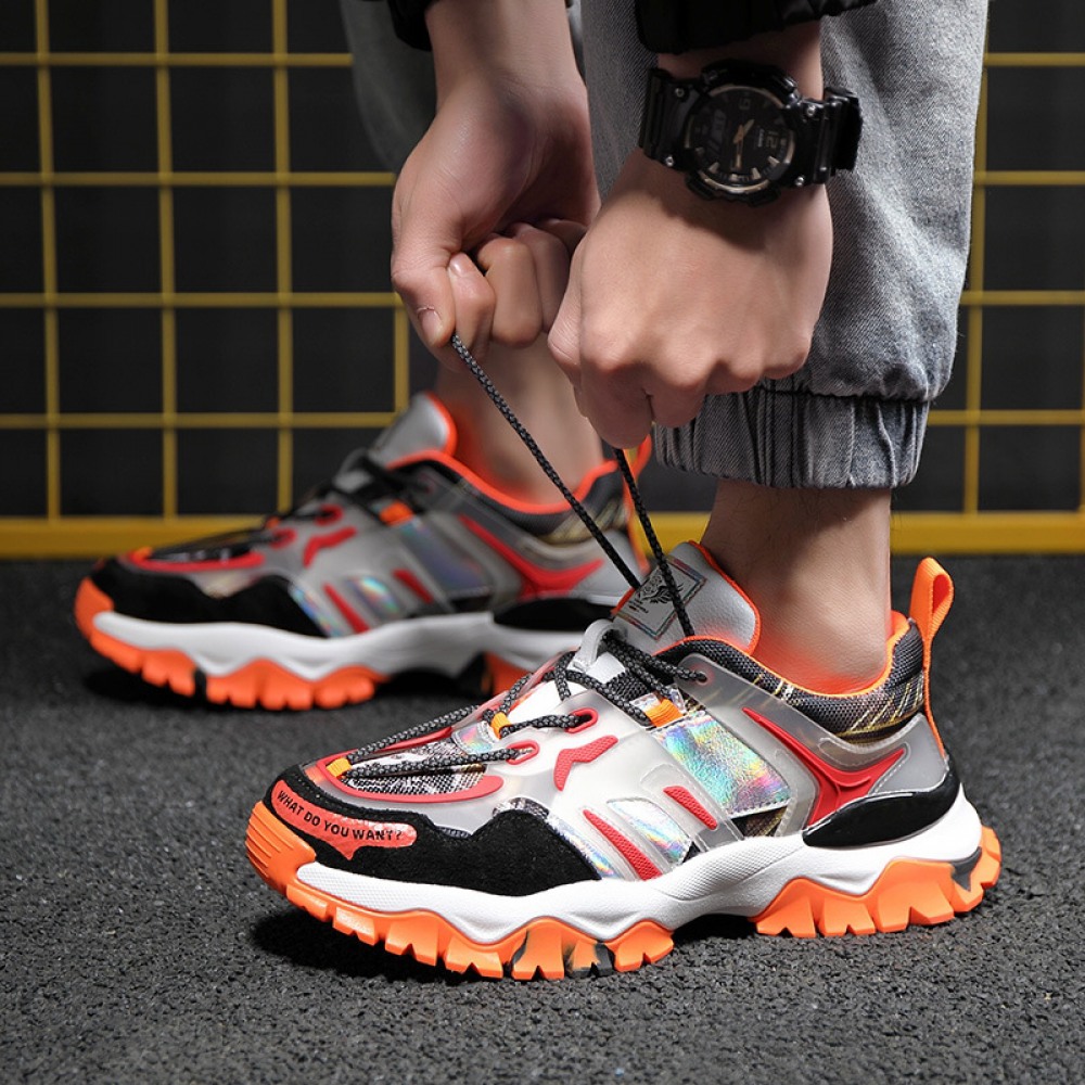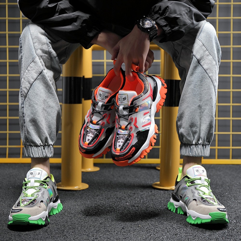 Spring New Sports Running Sneakers Trend Thick-Soled Flying Woven Personality Hip-Hop Trendy Shoes