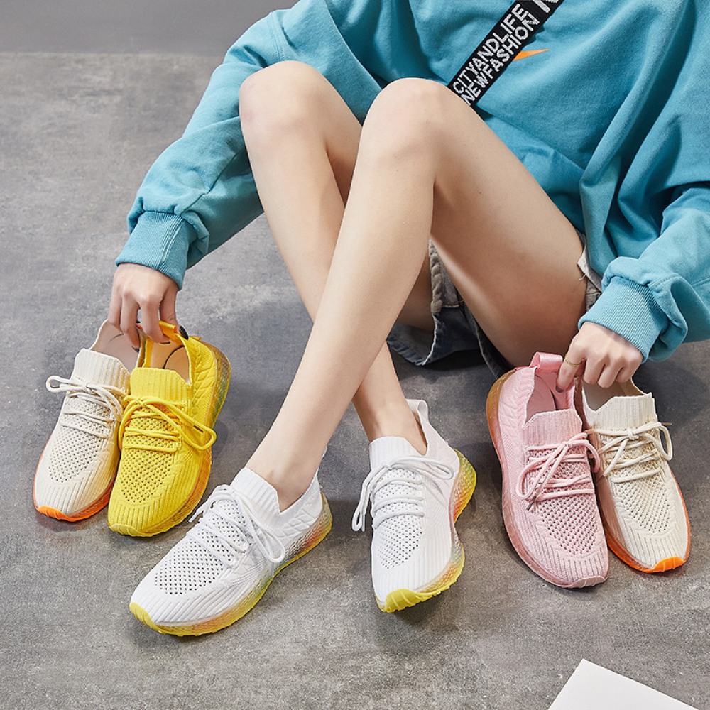 Breathable Flying Woven Women's Shoes New Sports Running Shoes Female Students Board Shoes